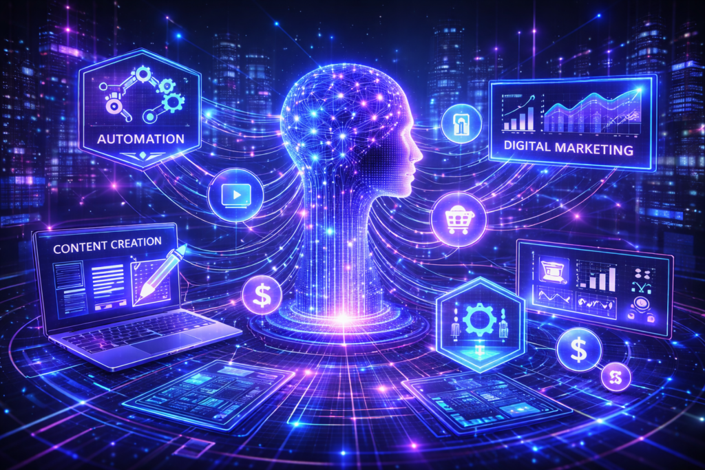 A Inteligência Artificial deixou de ser tendência e se tornou infraestrutura de negócios. Em 2026, empresas, criadores de conteúdo e empreendedores digitais estão usando IA não apenas para ganhar produtividade, mas para criar novas fontes de renda, escalar operações e automatizar lucros.